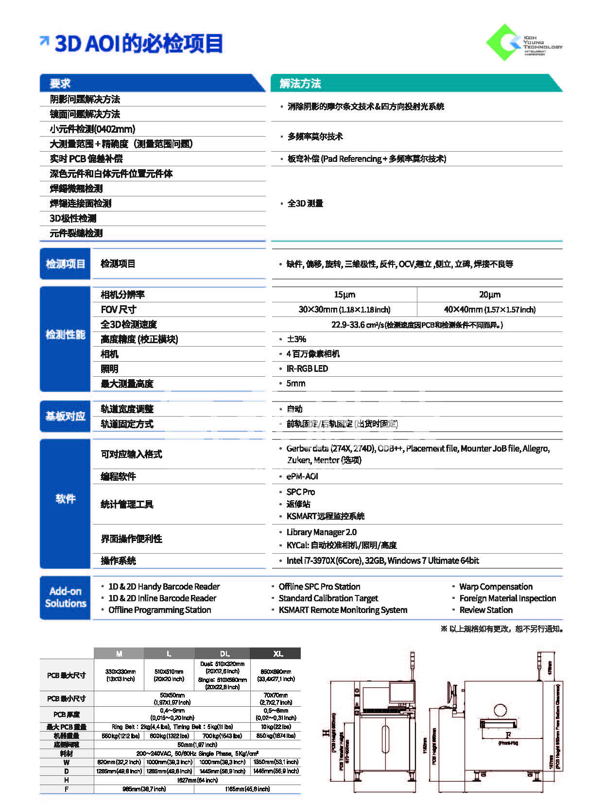 品牌:KOH YOUNG LiTE 3D AOI 性能特點: 全3D AOI,克服二維檢測的缺點 使用4光源投影和多頻率摩爾專利技術解決陰影 高精度3D焊點檢測